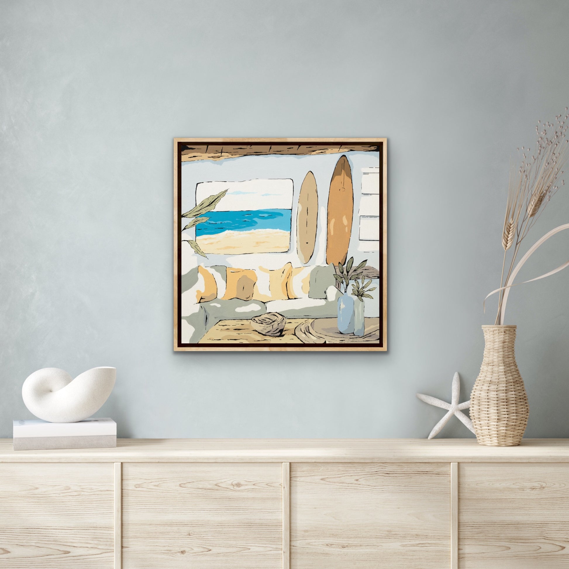 SIZE: 39cm x 39cm Framed in Raw Oak